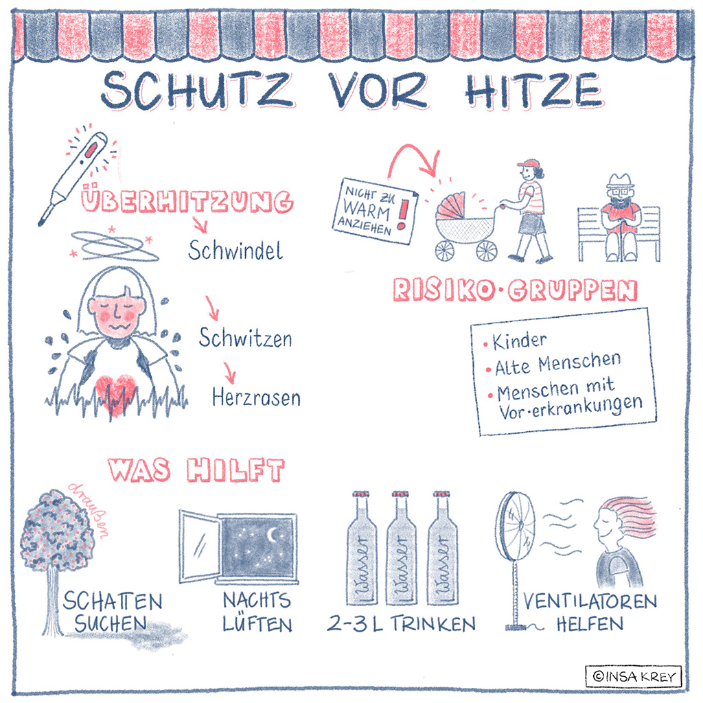 Erklärbild: Schutz vor Hitze: Was passiert bei Überhitzung? Wer sind die Risikogruppen? Was hilft an heißen Tage?